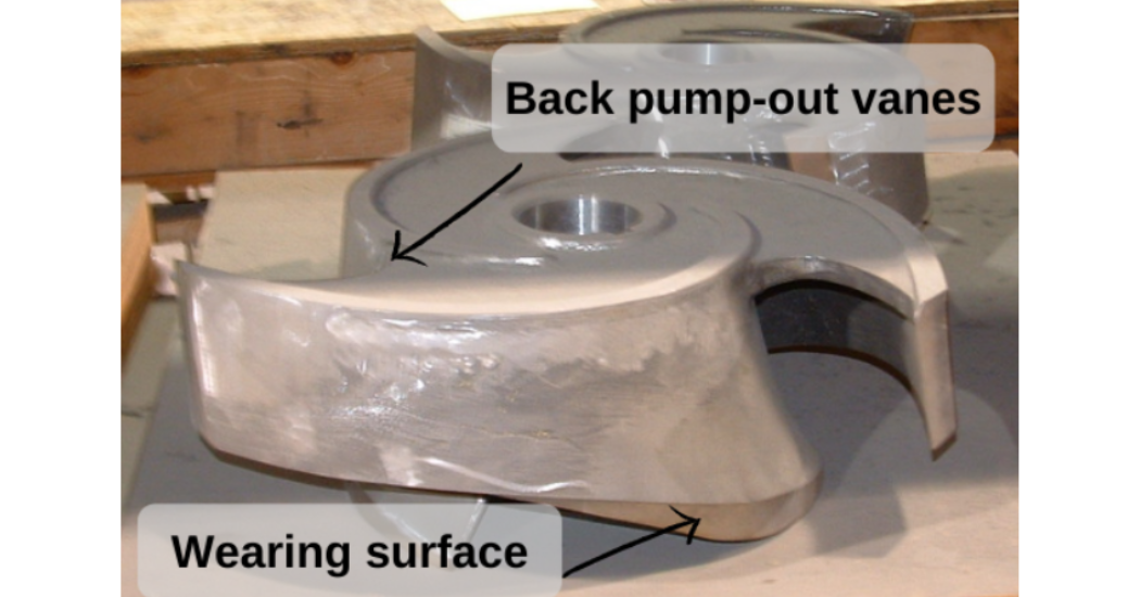 然而,隨著葉輪向吸入耐磨板的方向調整,葉輪后面的間隙會增加。大多數開式葉輪在非泵送側都有小葉片,稱為“背抽葉片”。這些葉片就像另一個離心泵一樣,其目的是保持填料函的低壓。如果沒有這些葉片,填料函壓力將接近泵的排放壓力,這可能導致填料污染和填料壽命降低。