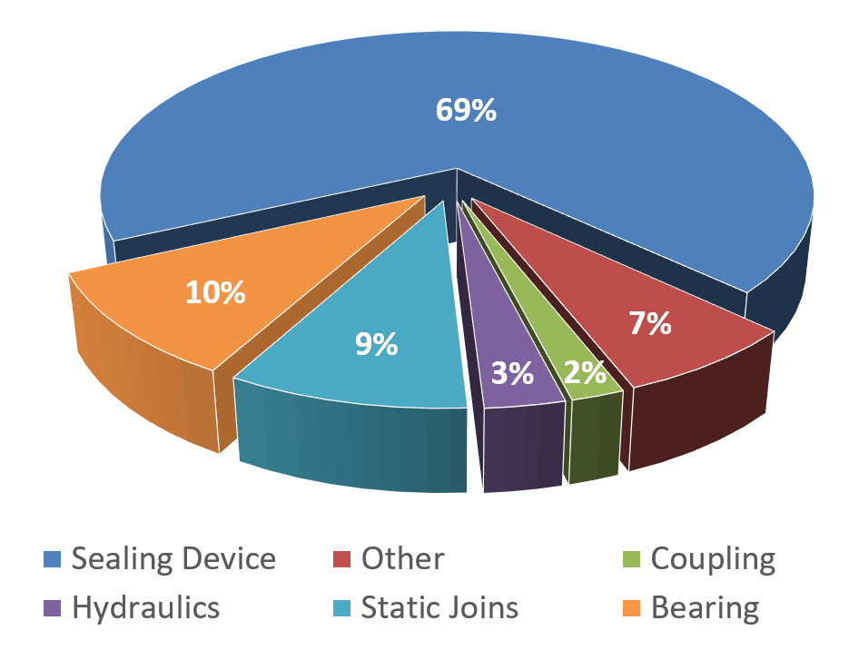 泵出現(xiàn)故障的原因有很多,但如下圖所示,超過三分之二的故障與密封裝置問題有關(guān)。隨著節(jié)約用水和減少需要處理的廢液數(shù)量的運(yùn)動,該行業(yè)越來越依賴機(jī)械密封。隨著安裝人口的增長,直接由機(jī)械密封引起的泵故障的百分比也在增加。