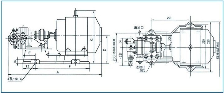 2.泵體、軸承座等為灰鑄鐵件,齒輪用優質碳素鋼材制作,亦可根據用戶特殊需要用銅材料或不銹鋼材料制作。